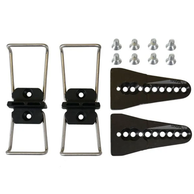 Includes: one pair of dual height wires, wire blocks, heel adapter plates, and mounting screws.